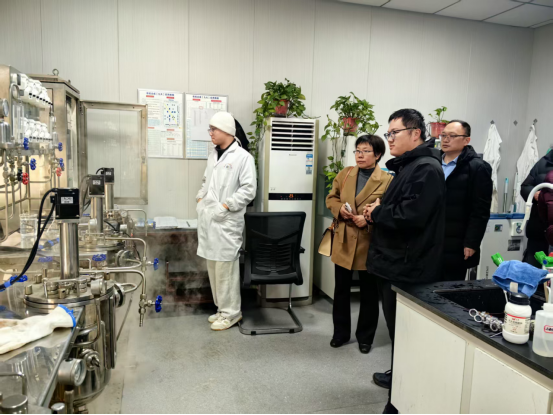 徐绍红进入到化学合成实验室,考察正在进行的连续流合成项目,了解连续流设备在制药行业的发展现状,询问详细实验参数。在合成生物学实验室,参观正在进行了发酵操作,了解菌株培养、基因编辑、酶促合成等技术细节,要求广大教师一定要深入企业一线,将行业最新进展融入课堂。