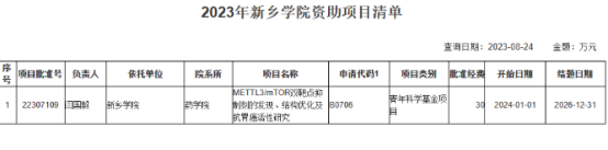8月24日,国家自然科学基金委官网发布了《关于2023年国家自然科学基金集中接收申请项目评审结果的通告》,我院闫国毅博士榜上有名,获得外援经费30万元。截止目前,我院共承担国家级项目8项,一半以上的博士承担了国家级项目,有力支撑了学科建设和人才培养。