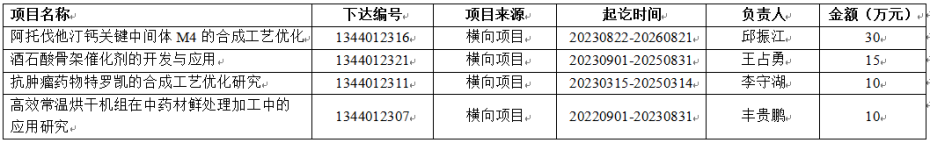 表2 2023年立项的横向科研项目一览表