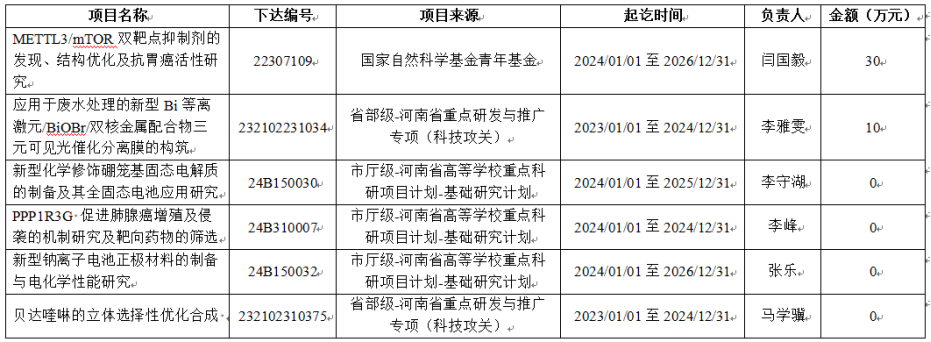 表1 2023年立项的市厅级以上科研项目一览表