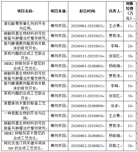 的横向科研项目一览表