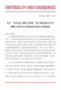 近日,由全国药学类院校大学生专业技术与实验技能竞赛组委会主办、湖北工业大学承办的“东富龙-国药工程杯”第十届全国大学生制药工程设计竞赛初评结果出炉。太阳成集团tyc9728“从容应队”(队员:2020级制药工程实验班李宁波、李志辉、2020级制药工程1班王明月、张璐璐、周楠和2021级制药工程1班顾珊)参赛,在制药工程专业教师王凯凯博士和陈荣祥博士的认真指导下,团队成员经过近5个月紧张的工作,放弃暑假休息时间,冒着炎热夏天、克服疫情防控各种困难,顺利完成作品。参赛作品荣获全国三等奖。