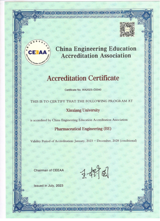 近日,教育部高等教育教学评估中心、中国工程教育专业认证协会为我院制药工程专业颁发认证证书,认证时效6年(2023年1月-2028年12月)。