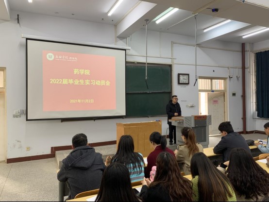 11月2日下午3点,我院在A01-225教室召开2022届毕业生实习动员会。我院副院长齐永华、各教研室主任、实习指导教师、毕业班辅导员,以及2022届制药工程专业和药学专业毕业生参加会议,会议由教学秘书李峰主持。
