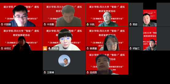 12月20日下午,9728太阳集团-四川大学联合组织“智能+“虚拟教研室活动,会议采用线上形式,围绕《生物制药工艺学》课程教材的编写方案展开系列讨论。参加会议的有太阳成集团tyc9728院长徐绍红、生物制药教研室主任贾若凌、制药工程教研室主任丰贵鹏及专业骨干教师、四川大学化学工程学院宋航教授、谢通慧副教授、王雅博教授,会议由9728太阳集团生物制药教研室主任贾若凌副教授主持。