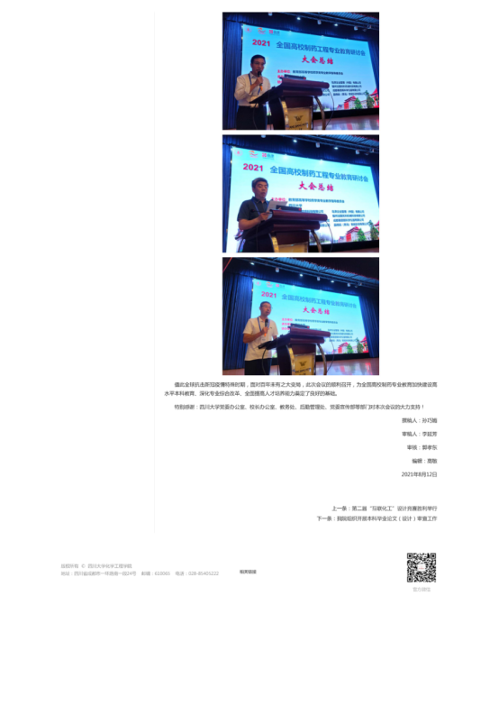 全国高校制药工程专业教育研讨会,徐绍红教授作了“制药工程专业实践训练与校内实训平台建设”的报告